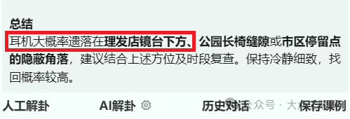 ✅ 用户实测反馈: “耳机丢了之后用它占了一课,结果显示当天下午会在理发店的柜子里找到——果然就在那儿!”